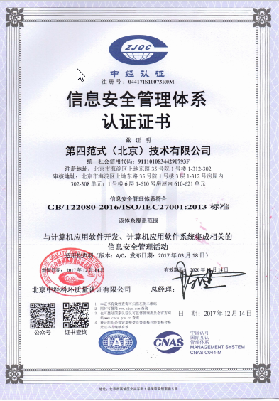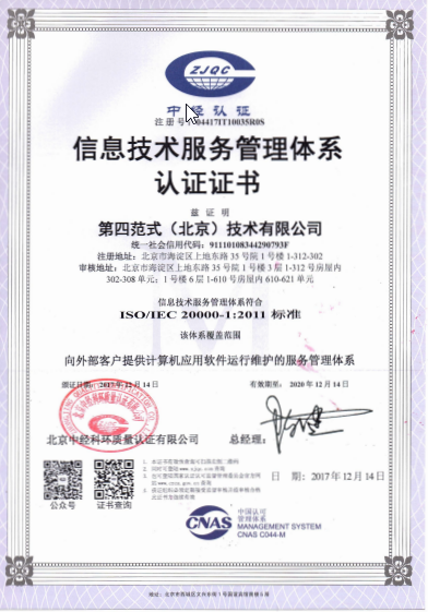 經(jīng)過(guò)我公司指導(dǎo),第四范式(北京)技術(shù)有限公司順利取得ISO27001信息安全管理體系、ISO20000信息技術(shù)服務(wù)管理體系認(rèn)證證書。