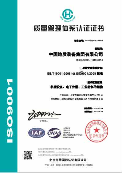 經(jīng)過我公司指導(dǎo),中國地質(zhì)裝備集團有限公司順利取得ISO9001質(zhì)量管理體系認證證書。