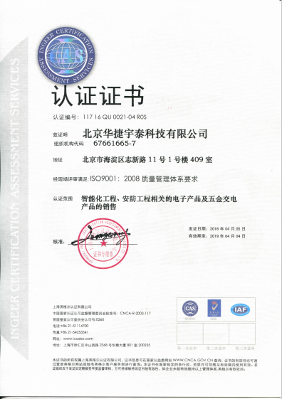 經(jīng)過我公司指導,北京華捷宇泰科技有限公司順利取得ISO9001質(zhì)量管理體系認證證書。