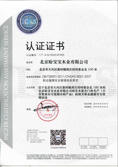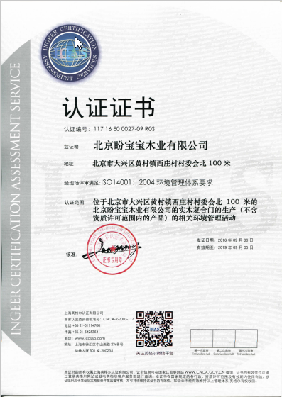 經(jīng)過我公司指導(dǎo),北京盼寶寶木業(yè)有限公司順利取得ISO9001質(zhì)量管理體系、ISO14001環(huán)境管理體系、OHSAS18001職業(yè)健康安全管理體系認證證書。