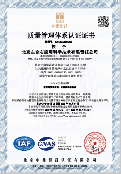 經(jīng)過我公司指導(dǎo),北京左合右應(yīng)用科學(xué)技術(shù)有限責(zé)任公司順利取得ISO9001質(zhì)量管理體系認(rèn)證證書。