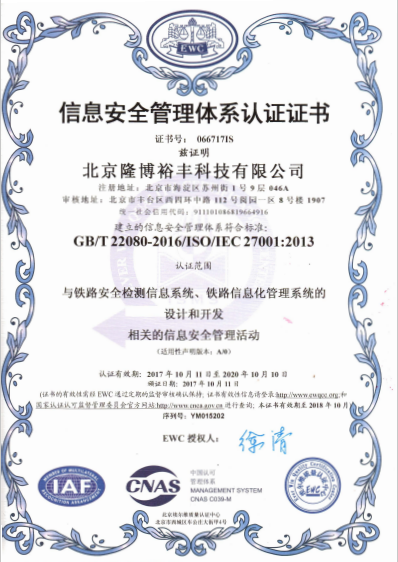 經(jīng)過我公司指導(dǎo),北京隆博裕豐科技有限公司順利取得ISO27001信息安全管理體系認(rèn)證證書。