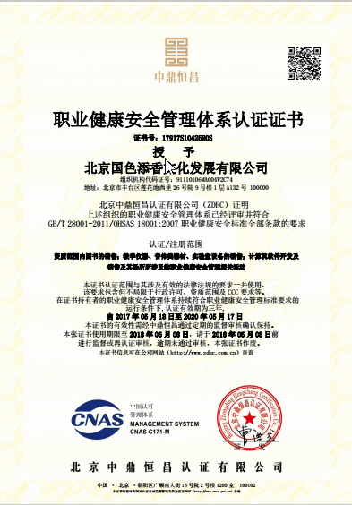 經(jīng)過我公司指導(dǎo),北京國色添香文化發(fā)展有限公司順利取得ISO9001質(zhì)量管理體系、ISO14001環(huán)境管理體系、OHSAS18001職業(yè)健康安全管理體系認(rèn)證證書。